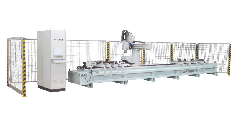 我公司為適應(yīng)軌道交通鋁型材和各種工業(yè)鋁材的加工,專門開發(fā)設(shè)計(jì)的一款高檔機(jī)、電、氣一體化設(shè)備。該型加工中心剛性足、速度快,主軸具有轉(zhuǎn)速高和低速較大扭矩的特點(diǎn),具有很高的加工效率,并且根據(jù)軌道交通鋁型材的特點(diǎn)做了適應(yīng)性的特殊設(shè)計(jì),使得該型設(shè)備可以較好的滿足軌道交通鋁型材各種長(zhǎng)度工件的高效加工。在軌道交通行業(yè),該類型設(shè)備現(xiàn)在已經(jīng)拓展成為系列產(chǎn)品,該型號(hào)設(shè)備是主要產(chǎn)品之一。